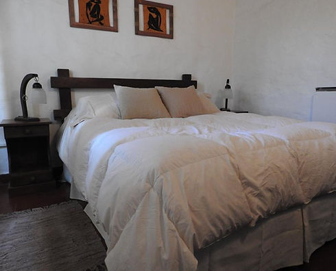 Confortable y amplia habitación con sommier de dos plazas, con ventilador de techo y aire acondicionado por si desea un ambiente más fresco. Cuenta con techos altos de madera y ventana con vista hacia el campo y la pileta. Los sonidos de pájaros lo recibirán apenas levante la persiana.